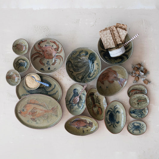 A beautiful collection of pottery, dishes, serving ware, glassware.