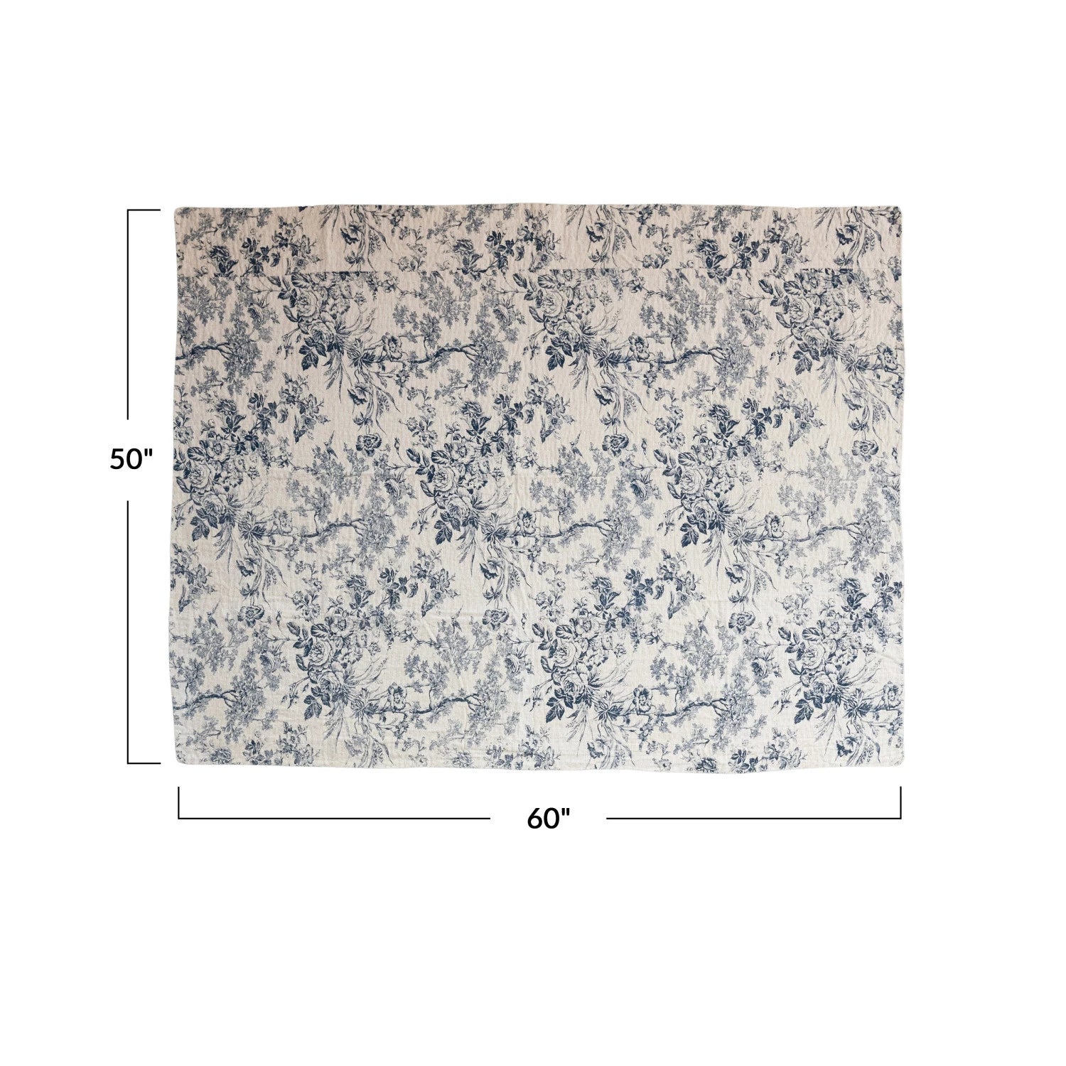Add this Blue and White Cotton Chambray Throw to the home for a touch of pastoral elegance. The toile pattern, a design that dates back to 18th-century France, depicts idyllic scenes that bring a sense of tranquility and timeless beauty. Perfect for draping over a sofa in a farmhouse, laying at the end of a bed in a French country-styled room, or as a cozy companion in a shabby chic reading nook, this throw blends historical charm with modern comfort. Measures 60.0 in length and 50.0 in width, ensuring ample coverage for snuggling or styling. Its generous size and soft fabric make it a versatile and inviting addition to any living space.