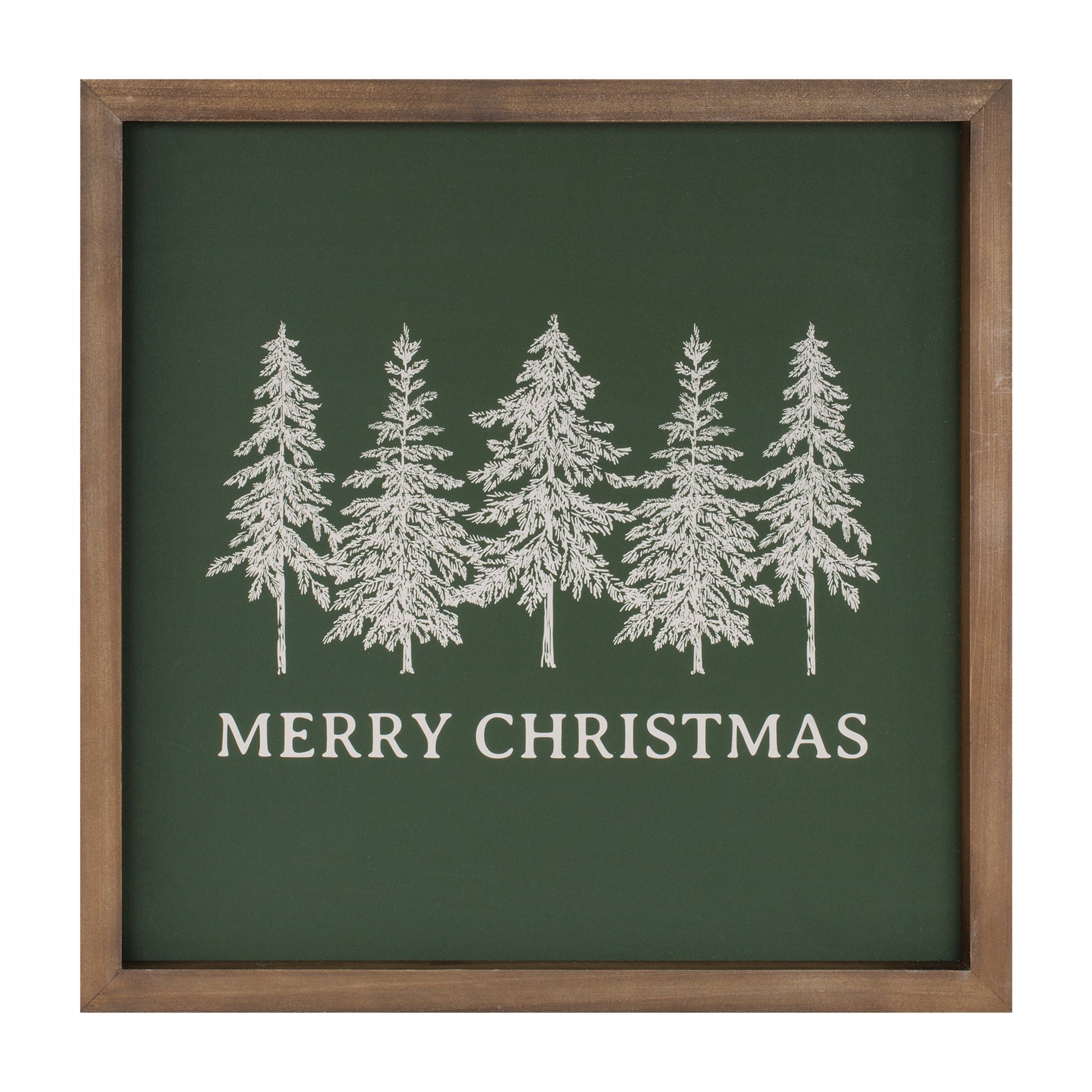 14" square evergreen print with wood frame