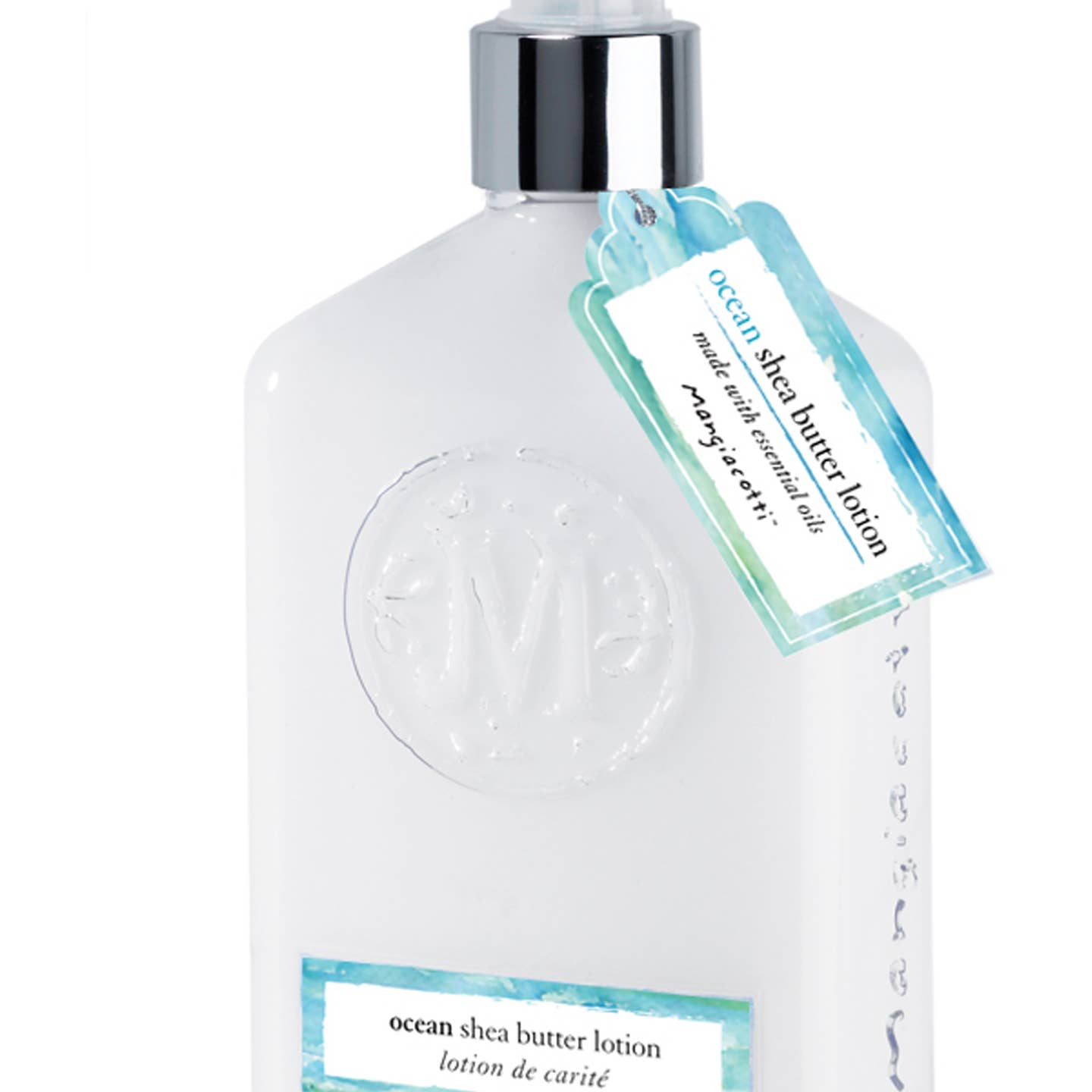Shea Butter Lotion hydrates and protects your skin with shea butter, Aloe Vera and essential oils. Beautifully scented, this rich formula penetrates quickly and leaves your skin smooth and soft. 12 oz. embossed bottle.