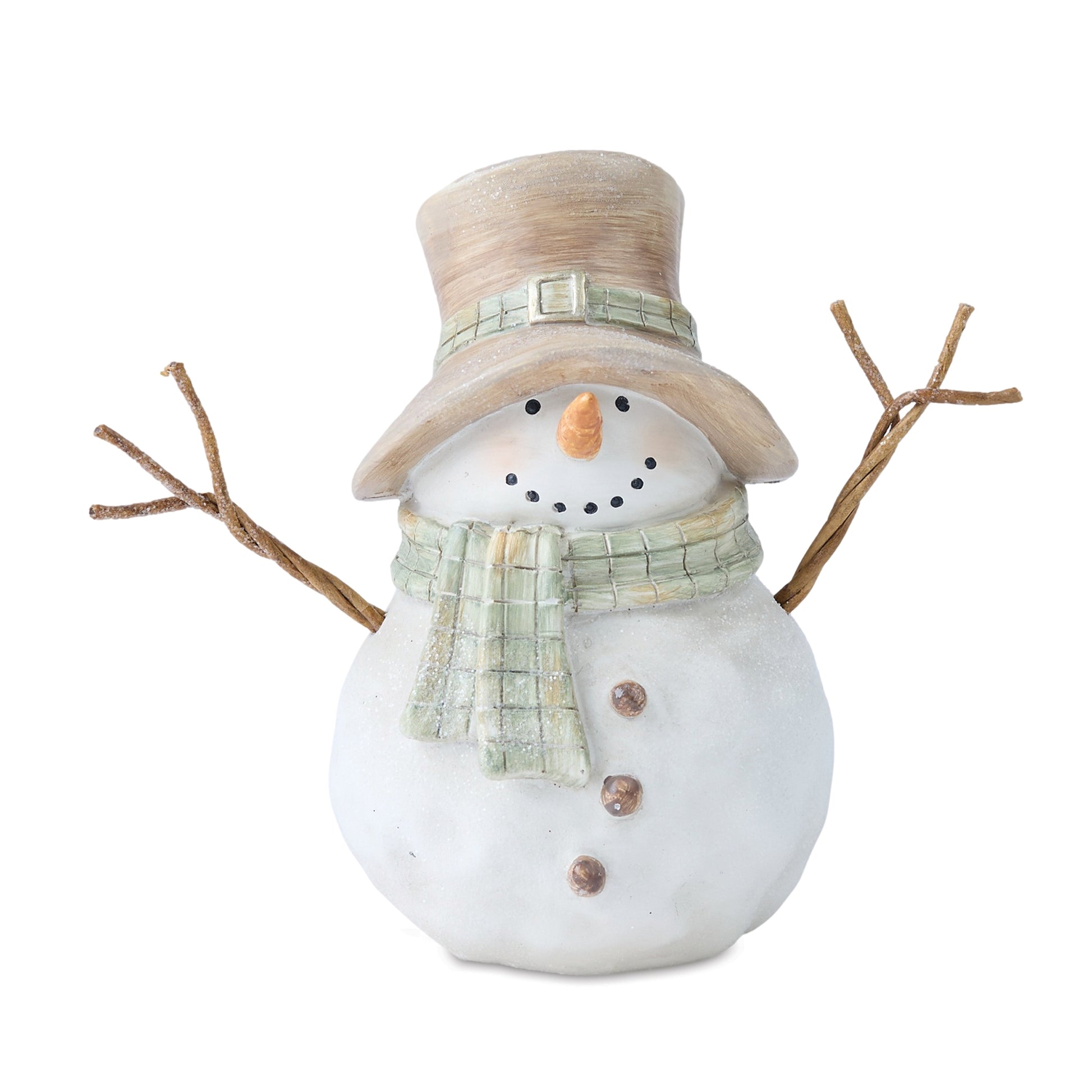 Cheerful resin snowman standing 5.75 inches tall. Perfect for adding winter charm to your holiday décor!