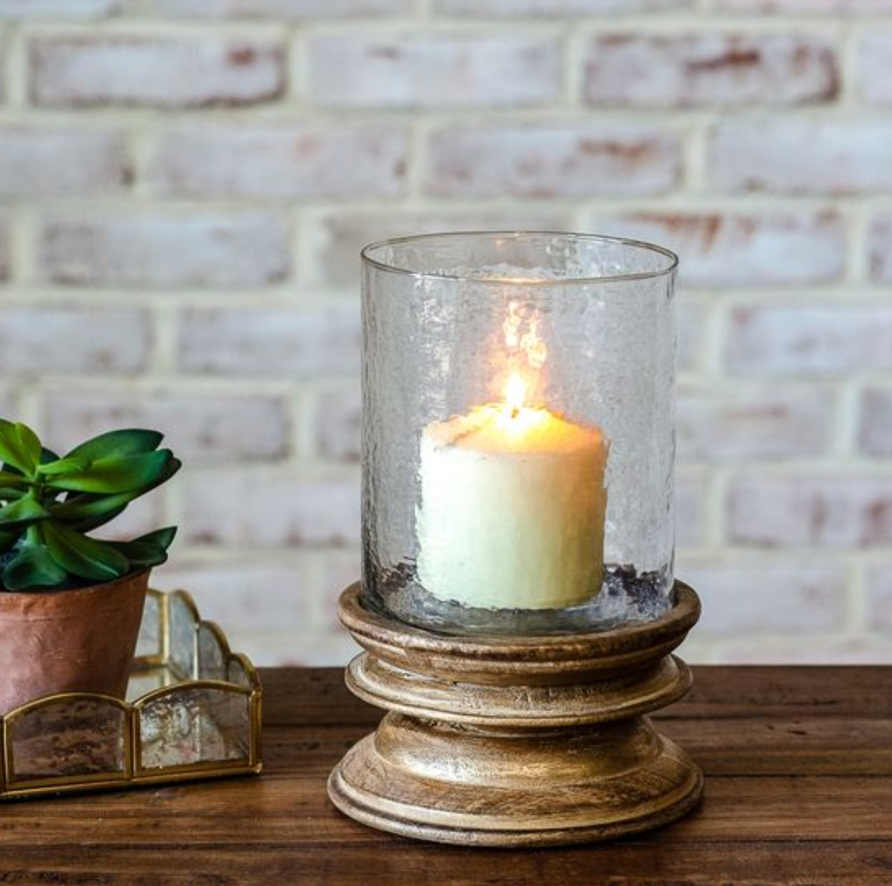 Elevate your décor with this striking pillar holder that merges rustic charm with refined elegance. The 8.5-inch cylinder showcases your favorite candles in stunning fashion, while the brushed gold accents add a touch of luxury and sophistication. Anchored by a natural wood base, this piece measures 5.9 x 5.9 x 8.66 inches—ideal for creating an inviting focal point on shelves, sideboards, or entryways. The thoughtful combination of materials brings warmth and dimension to any space, making it a versatile choice for year-round styling or special occasions.